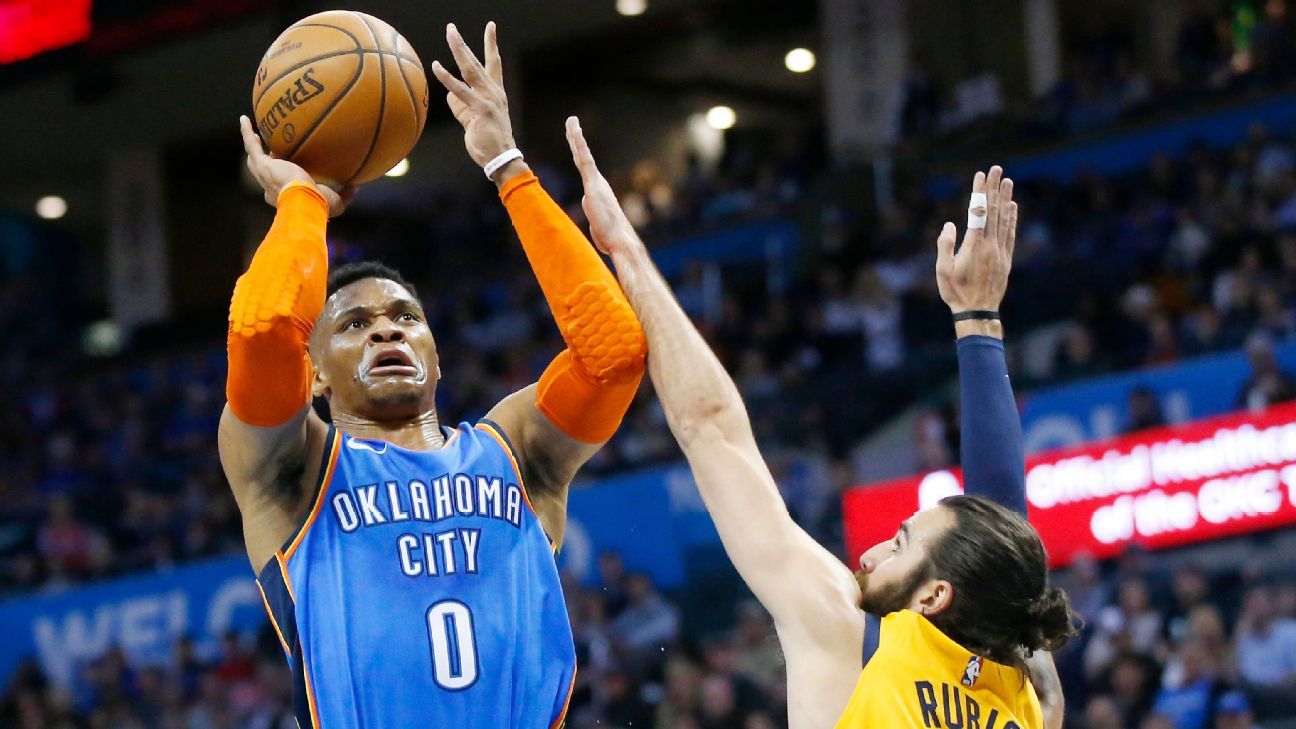 Russell Westbrook finished with 43 points, 15 rebounds and 8 assists in 43 minutes in the Thunder's double-OT win over the Jazz on Friday night, ending his streak at 11 straight games with a triple-double. Read More