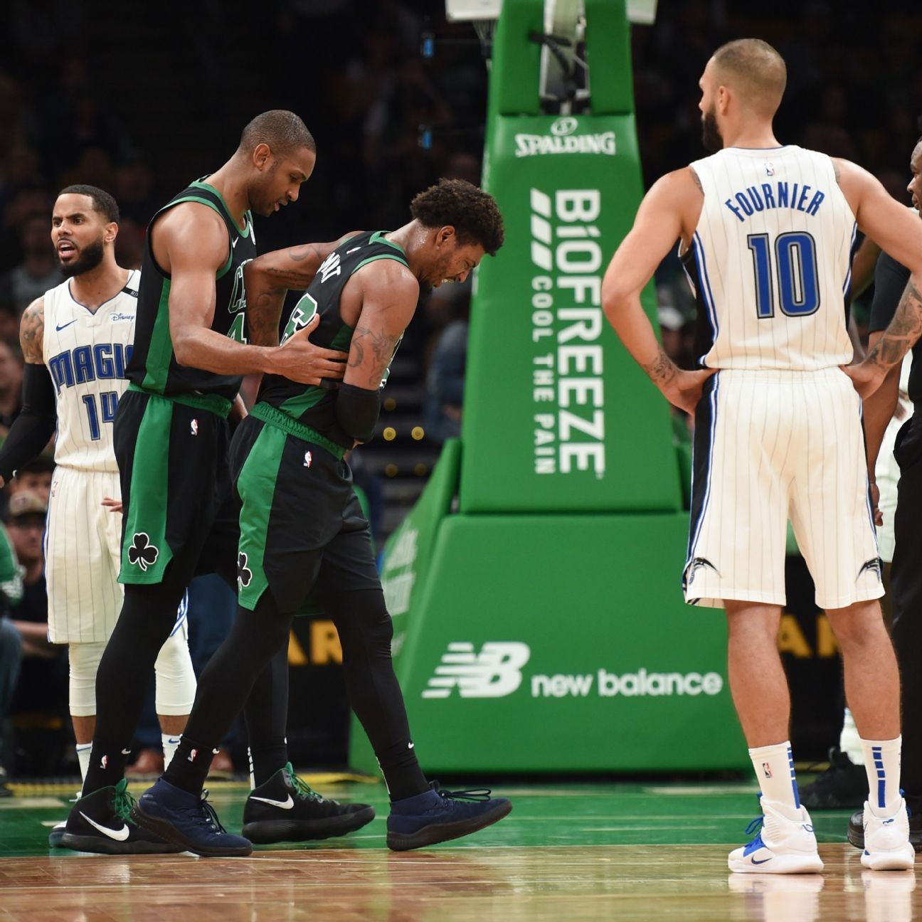 Celtics guard Marcus Smart suffered a left oblique strain during Boston's loss to Orlando on Sunday night, a source told ESPN's Adrian Wojnarowski. Forward Jayson Tatum left the game for good after just six minutes due to a bruised shin. Read More